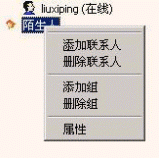 這時(shí)用戶就可以選擇相應(yīng)的功能對(duì)該好友進(jìn)行操作,灰色的選項(xiàng)是不可用的功能,如果想使該項(xiàng)功能可用,可以在該用戶的屬性中編輯,添入好友的該項(xiàng)信息。