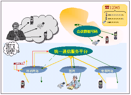 企業(yè)會(huì)議召集人通過撥打企業(yè)會(huì)議群組號碼,可以同時(shí)呼叫群組內(nèi)所有的成員參加開會(huì);會(huì)議組員不必到會(huì)議現(xiàn)場也能參加會(huì)議,提高了企業(yè)的辦公效率;會(huì)議流程如下:.鐵路內(nèi)部通信