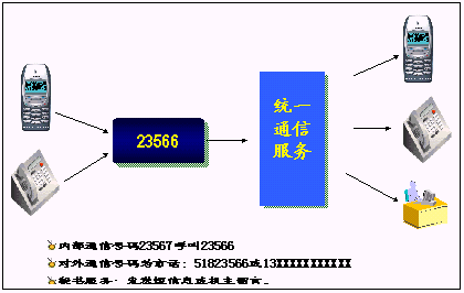 鐵路內(nèi)部員工可以統(tǒng)一所有的通信工具,只使用一個(gè)號碼,一次呼叫便可以完成通信,使通信更加簡單、可靠?梢詫(shí)現(xiàn)換機(jī)換網(wǎng)不換號,用戶獲得一個(gè)終身的聯(lián)系號碼,用戶無論更換任何通信工具,聯(lián)系號碼和方式不會(huì)改變。例如:在路局領(lǐng)導(dǎo)找下屬的時(shí)候,只需要撥打他的統(tǒng)一號碼,便可以直接找到他。不必考慮他是否在外出還是在辦公室,是否更換了手機(jī)號碼。統(tǒng)一號碼就像他員工號碼,始終不變,即撥即通!