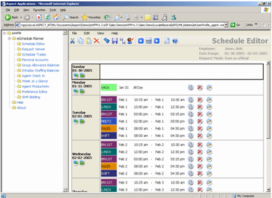 - 員工可以通過網(wǎng)絡(luò)瀏覽器、電話或者手機(jī)申請工作班次。所有申請按照收到的時(shí)間順序排隊(duì)并得到處理。系統(tǒng)根據(jù)呼叫中心經(jīng)理制定的規(guī)則對坐席提交的申請進(jìn)行確認(rèn)或者拒絕。