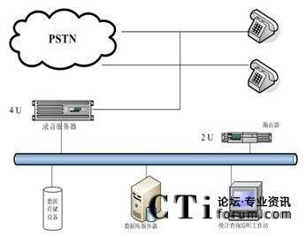 用戶需要建設一套“分布錄音,集中管理”的電話錄音系統(tǒng),在中心點有16個坐席,總計各縣有11點網點,每網點有8個坐席(項城16個)。中心和各網點之間用聯(lián)通的專網連接。用戶需要在聯(lián)通專網上進行數據傳輸。