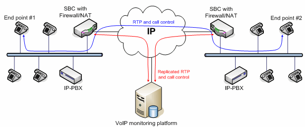 VoIP應(yīng)用的質(zhì)量監(jiān)控分為主動式和被動式兩種實現(xiàn)方式。主動式的系統(tǒng)能產(chǎn)生呼叫,而被動式的系統(tǒng)只是監(jiān)測進行中的呼叫。兩種方法各有優(yōu)勢。VoIP監(jiān)控方案的架構(gòu)取決于網(wǎng)絡(luò)Edge設(shè)備的類型和結(jié)構(gòu)。有些大型企業(yè)采用的VoIP網(wǎng)絡(luò)配備了一種特殊設(shè)備,叫SBC(Session boarder controller),除了完成類似路由器的功能外,還能完成流量分配、數(shù)據(jù)/語音信號加密以及業(yè)務(wù)質(zhì)量控制等功能。此外,通過過濾和替換數(shù)據(jù)包內(nèi)的、與用戶有關(guān)的特定信息,SBC還能隱藏公司的網(wǎng)絡(luò)拓?fù)浣Y(jié)構(gòu)和用戶信息,不被外部的IP世界所知道。