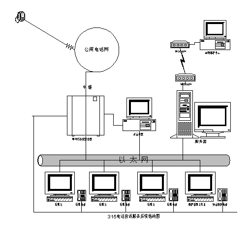 ZQ-315電話投訴服務(wù)系統(tǒng)由如下各部分組成: