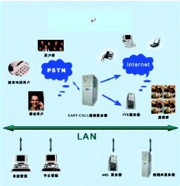 EASY CALL是基于整合式呼叫中心平臺的客戶服務中心系統(tǒng),系統(tǒng)可分為座席、IVR、WEB服務和業(yè)務幾部分。該系統(tǒng)支持數(shù)字中繼和模擬中繼,提供普通模擬座席和IP座席,支持異地遠端座席,提供了實用的班長監(jiān)聽、插話、會議等功能。