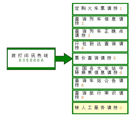 進入系統(tǒng)后可以進行定購火車票、查詢列車信息、查詢列車正晚點、行包到達查詢等操作。所有供查詢信息都由系統(tǒng)實時從數(shù)據(jù)庫中調(diào)用,由訊飛語音合成系統(tǒng)轉(zhuǎn)換成語音播放,不僅保證了信息的實時性,同時業(yè)務(wù)更加靈活,語音效果更好,系統(tǒng)的管理和維護也比以前便捷多了。
