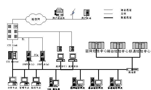 對于不同類型消息呼入、呼出的外圍系統(tǒng)設(shè)計遵循模塊化原則;系統(tǒng)內(nèi)部消息流滿足格式統(tǒng)一、可操作性統(tǒng)一、開發(fā)接口統(tǒng)一等特點。在軟、硬件選型上,充分考慮系統(tǒng)的穩(wěn)定性、開放性、經(jīng)濟性,根據(jù)不同的系統(tǒng)規(guī)模進行詳細論證。