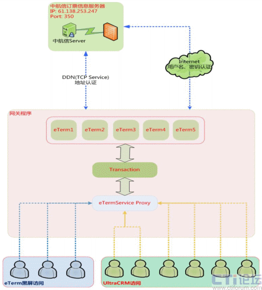 航空訂票呼叫中心由CallThink-M多媒體呼叫中心平臺(tái)、Eterm代理服務(wù)器 和UltraCRM 航空訂票應(yīng)用業(yè)務(wù)系統(tǒng)組成。