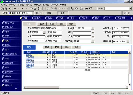下面以國(guó)內(nèi)中小型CRM市場(chǎng)的主流軟件--SynleadCRM為例,結(jié)合客戶單位和聯(lián)系人的分類管理,談?wù)勅绾斡煤肧ynleadCRM中的"類別"功能。