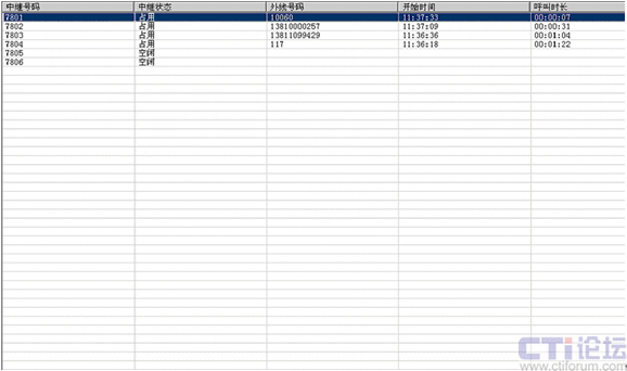 如圖3所示,管理員能得到中繼來(lái)電的明細(xì)信息,來(lái)電號(hào)碼,來(lái)電時(shí)長(zhǎng),都有詳細(xì)數(shù)據(jù)。
