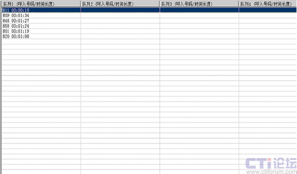 如圖4所示,管理員能得到隊(duì)列排隊(duì)的詳細(xì)信息如:來(lái)電號(hào)碼,等待時(shí)間。