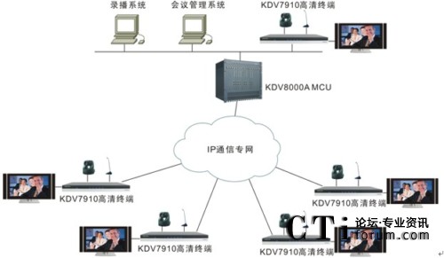 各會場配置KDV7910高清視頻終端,該終端是業(yè)內(nèi)第一款真正支持1080P的高清視頻會議終端,具有非凡的畫面質(zhì)量、音頻效果和卓越的雙流協(xié)作能力。各終端與中心點(diǎn)MCU之間通過全省財(cái)政IP通信專網(wǎng)相連。