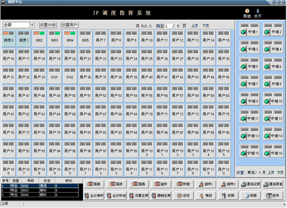 調(diào)度臺(tái)可顯示用戶、中繼的工作狀態(tài),所有狀態(tài)一目了然,調(diào)度員可方便的運(yùn)用強(qiáng)插、強(qiáng)拆等功能