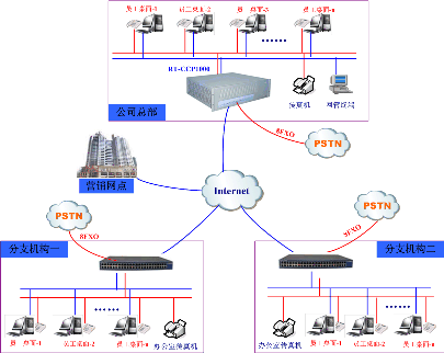 生產(chǎn)總部與分支機(jī)構(gòu)、營銷網(wǎng)點實現(xiàn)統(tǒng)一辦公電話功能(即VOIP組網(wǎng)+辦公電話功能)。