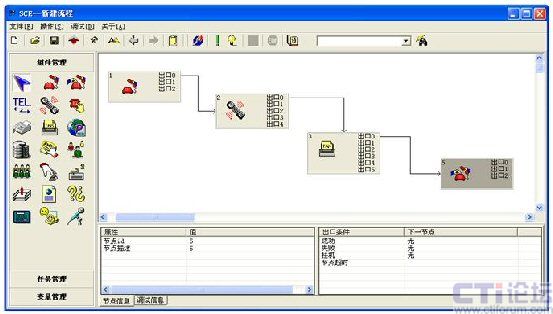 簽入、簽出、置閑、置忙、應(yīng)答、掛機、保持/取回、咨詢/取消咨詢、兩路切換、轉(zhuǎn)接、三方會議、轉(zhuǎn)技能組、外呼等;豐富的業(yè)務(wù)系統(tǒng)功能包括:工單管理、知識庫、客戶管理、質(zhì)檢管理、外撥管理、業(yè)務(wù)統(tǒng)計報表、公告板、郵件管理、系統(tǒng)管理、前臺業(yè)務(wù)(坐席)功能、班長功能、數(shù)據(jù)同步、全程錄音、業(yè)務(wù)處理等,這些功能不作詳細介紹。IVR流程也是采用非常先進的圖形化流程編輯器,通過簡單的拖、拉圖標方式即可實現(xiàn)對IVR流程的定制:
