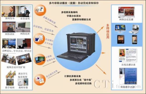 CTI論壇(ctiforum)6月8日消息(記者 潘婷婷):隨著視訊技術(shù)的不斷發(fā)展,市場(chǎng)上出現(xiàn)了越來(lái)越多的應(yīng)用終端,除了傳統(tǒng)的PC外,IPAD、IPHO等新興移動(dòng)終端紛紛進(jìn)入市場(chǎng),多終端應(yīng)用的網(wǎng)絡(luò)視音頻系統(tǒng)越來(lái)越被用戶所關(guān)注。傳統(tǒng)的直播錄播系統(tǒng)在很大的程度上已不能滿足部分用戶的需求,清晰、流暢、支持多終端應(yīng)用的網(wǎng)絡(luò)直播錄播系統(tǒng)已經(jīng)成為網(wǎng)絡(luò)視頻應(yīng)用的亮點(diǎn)和優(yōu)勢(shì)。北京經(jīng)緯中天信息技術(shù)有限公司作為國(guó)內(nèi)一流的專業(yè)網(wǎng)絡(luò)視音頻應(yīng)用平臺(tái)開發(fā)商和服務(wù)商,不僅僅專注于行業(yè)技術(shù)的研究,同時(shí)更加關(guān)注市場(chǎng)的需求,實(shí)時(shí)地推出了“支持多終端應(yīng)用的富媒體直播錄播系統(tǒng)”,可很好地滿足用戶多種網(wǎng)絡(luò)視頻應(yīng)用。