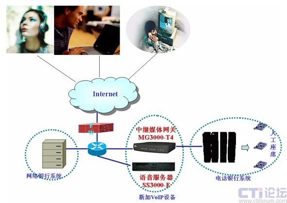 提高安全性,平臺位于防火墻后,不設公網(wǎng)地址:眾所周知,VoIP的通話必須要有一個在公網(wǎng)上的平臺來控制。但由于銀行方面的安全性要求,軟交換平臺必須位于防火墻之后,并且不能配置真實的公網(wǎng)IP。為了適應此要求,高鴻公司的軟交換平臺支持NAT后的工作模式。