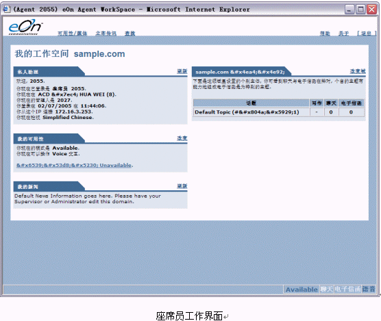 用戶在第一次登陸時(shí),在IE的地址欄中正確鍵入WorkSpace的IP地址便可以進(jìn)入WorkSpace的歡迎頁面。在該頁面上顯示有座席員工作空間(Agent