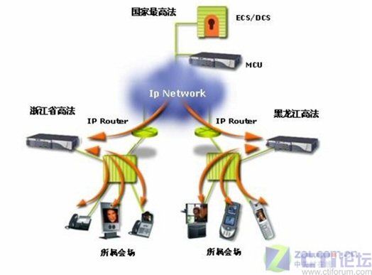 浙江省高等法院的應(yīng)用只是一個縮影,據(jù)了解,在全國法院系統(tǒng)在最高人民法院的示范作用下,各省級高等法院已經(jīng)紛紛應(yīng)用RADVISION視頻會議系統(tǒng),全面構(gòu)造省級法院到地(市)級法院的二級檢察院視頻會議網(wǎng)絡(luò)。目前全國已經(jīng)有22個省成功建造了省級法院RADVISION MCU視頻會議交互平臺,組成了由24臺RADVISION MCU實(shí)現(xiàn)的最高法院-22個省級法院-地(市)法院的三級視頻會議網(wǎng)絡(luò)。RADVISION建設(shè)的視頻會議系統(tǒng),既可以實(shí)現(xiàn)每個省單獨(dú)同時或分時靈活組建省—地(市)兩級視頻會議,也可以召開最高法院—22個省級法院—地(市)法院的3級視頻會議,并實(shí)現(xiàn)了最高法院對地(市)法院視頻會議終端的直接控制和管理。