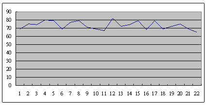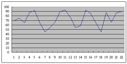 這是另外一個呼叫中心的服務(wù)水平,也是從早上8點(diǎn)開始,一直到晚上6點(diǎn),每隔半個小時的服務(wù)水平趨勢。雖然平均服務(wù)水平也是在73左右,但震蕩幅度卻小了很多,服務(wù)水平只在81到68這中間震蕩。