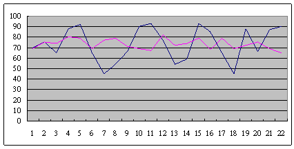 從平均數(shù)的分析方法來看,兩個呼叫中心這段時間的平均服務(wù)水平都是一樣的,都是73,但從方差的角度來看,這兩個呼叫中心內(nèi)部的管理,卻是非常不一樣的,兩條線的方差就是明顯不一樣(或是說標(biāo)準(zhǔn)差)。