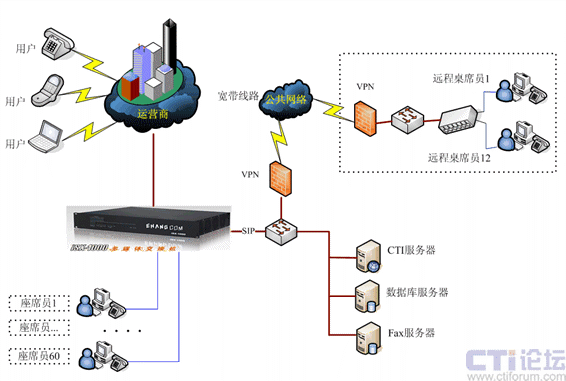 浙江電信外呼系統(tǒng)首期為240線接入,60個(gè)坐席,12個(gè)遠(yuǎn)程IP坐席,隨著業(yè)務(wù)的擴(kuò)展模塊化增加系統(tǒng)容量并支持呼入及企業(yè)會(huì)議功能。