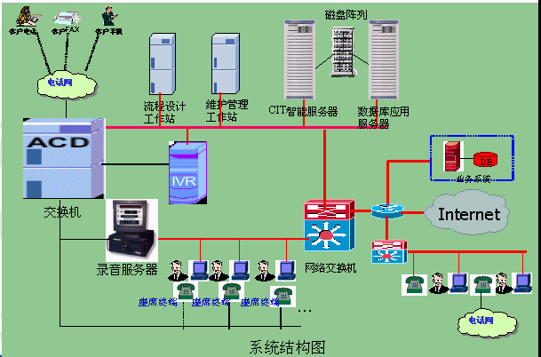 接入平臺采用呼叫中心專用交換設備,局網(wǎng)帶寬100M