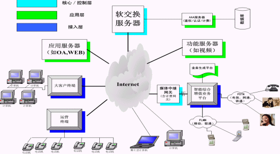 在此基礎(chǔ)下電信、網(wǎng)通、移動(dòng)、聯(lián)通、鐵通、衛(wèi)通等電信運(yùn)營商可用來做下一代網(wǎng)絡(luò)(NGN)業(yè)務(wù)及運(yùn)營,虛擬電信運(yùn)營商和增值業(yè)務(wù)服務(wù)商、新興電信運(yùn)營商開展各種電信運(yùn)營、增值業(yè)務(wù)和搶占語音市場的利器,政府和企業(yè)辦公的即時(shí)通信平臺(tái)和呼叫中心平臺(tái)、信息服務(wù)、管理平臺(tái)。