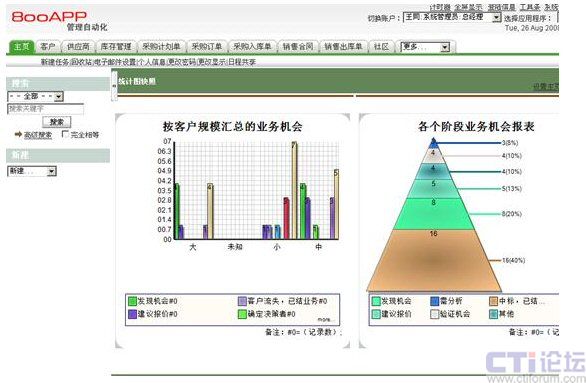 2.更突出商業(yè)機(jī)會(huì)管理:從管理客戶的線索及側(cè)重點(diǎn)來(lái)看:ERP以訂單管理為線索,注重內(nèi)部資源整合,而CRM強(qiáng)調(diào)以客戶為中心,注重客戶資源探;從管理方法來(lái)說(shuō):ERP注重銷售結(jié)果,CRM注重銷售過(guò)程管理,對(duì)大量未成交商機(jī)(項(xiàng)目)管理,及時(shí)監(jiān)控商機(jī)(項(xiàng)目)的進(jìn)展?fàn)顩r;從客戶信息采集來(lái)說(shuō):ERP的銷售管理系統(tǒng)通常只是簡(jiǎn)單的記錄了客戶的聯(lián)系信息,而CRM不僅管理客戶的聯(lián)系信息,還管理客戶的背景信息、特征信息以及關(guān)鍵聯(lián)系人的家庭背景、工作歷史、休閑愛(ài)好、金錢價(jià)值觀等信息,還包括大量潛在客戶在內(nèi)的全公司整體客戶信息;從管理的具體內(nèi)容來(lái)看:ERP的銷售管理系統(tǒng)主要管理客戶聯(lián)系信息及訂單信息,而CRM卻管理客戶資源、市場(chǎng)信息、銷售過(guò)程信息、報(bào)價(jià)、合同、競(jìng)爭(zhēng)對(duì)手、售后服務(wù)等大量信息。800CRM以客戶為“中心”,以商業(yè)機(jī)會(huì)為主線,提供自動(dòng)化銷售工具,按照行業(yè)標(biāo)準(zhǔn)、國(guó)際標(biāo)準(zhǔn)提供銷售解決方案,幫助企業(yè)獲得更多客戶價(jià)值。