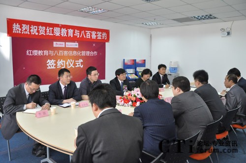 簽約當日,八百客與紅纓教育在北京中關(guān)村軟件園舉辦隆重的“信息化管理啟動會”。紅纓總經(jīng)理王紅兵、八百客CEO李智等參加此次項目的啟動會。
