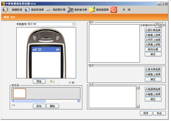 (中聯(lián)軟通商務(wù)彩信通彩信編輯界面)