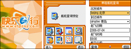 “快樂(lè)e行”預(yù)裝在手機(jī)中的存儲(chǔ)卡中,可直接安裝到手機(jī)的應(yīng)用菜單欄里,點(diǎn)擊圖標(biāo),就可以直接進(jìn)入首頁(yè)。圖形化的操作按鍵、簡(jiǎn)明的文字提示、順暢的操作流程,人性化的設(shè)計(jì)讓機(jī)票預(yù)訂變得不再麻煩。