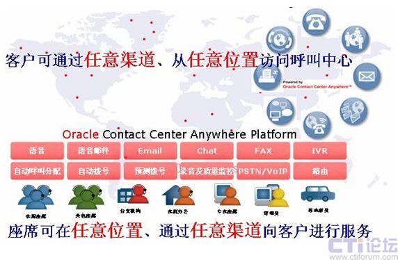 Center Anywhere的多通道技術(shù),能提供完善的“從客戶到座席”體驗(yàn)。甲骨文把聯(lián)絡(luò)中心技術(shù)與客戶關(guān)系管理和商業(yè)智能更緊密地結(jié)合起來(lái),幫助客戶降低集成完全不同的聯(lián)絡(luò)中心與客戶管理管理資料、分析和通信技術(shù)的成本與復(fù)雜性。