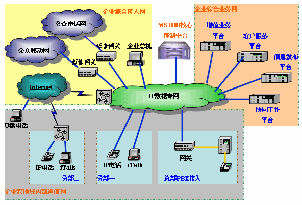 單一的電話通信方式已經(jīng)遠遠不能滿足現(xiàn)代企業(yè)(包括行業(yè)、政府機關(guān))在通信方面的需求,隨著IP網(wǎng)絡的不斷普及、新的通信技術(shù)的不斷發(fā)展,“多媒體協(xié)同通信”一個新的通信概念已經(jīng)展現(xiàn)在我們的面前。我們需要跨地域的內(nèi)部電話,我們需要廉價的IP長途,我們同樣需要通信服務平臺、信息發(fā)布平臺,我們還需要工作協(xié)同、信息共享!岸嗝襟w協(xié)同通信”就能滿足我們這些需要。