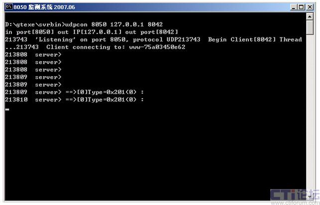 監(jiān)控后臺運行dispsvr.bat(d:\gtexe\bin>udpcon 8050 127.0.0.1 8042)