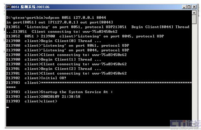 監(jiān)控后臺運行dispport.bat(d:\gtexe\bin>udpcon 8051 127.0.0.1 8044)