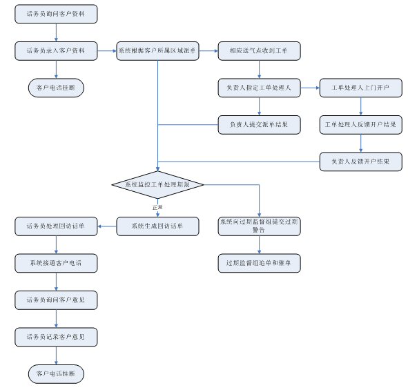 投訴受理:通過(guò)人工、自動(dòng)語(yǔ)音、短信、傳真、Email、web等方式受理各種用戶投訴,并可以工單的方式流轉(zhuǎn)到相關(guān)的部門進(jìn)行處理,并記錄處理過(guò)程和跟蹤處理結(jié)果。能夠處理從上級(jí)部門、消協(xié)等方面轉(zhuǎn)過(guò)來(lái)的用戶投訴。