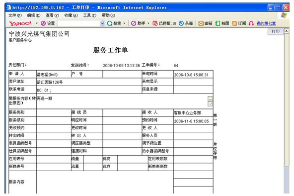 業(yè)務(wù)查詢:用戶可通過(guò)受理人員或自動(dòng)語(yǔ)音應(yīng)答系統(tǒng)根據(jù)用戶要求從數(shù)據(jù)庫(kù)查詢資料,然后通過(guò)語(yǔ)音方式播報(bào)或送到用戶指定傳真機(jī)或其他終端設(shè)備上。應(yīng)考慮以后用web方式查詢氣費(fèi)等數(shù)據(jù),以不動(dòng)及主體設(shè)備方式平滑升級(jí)。