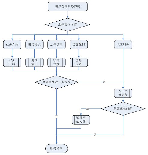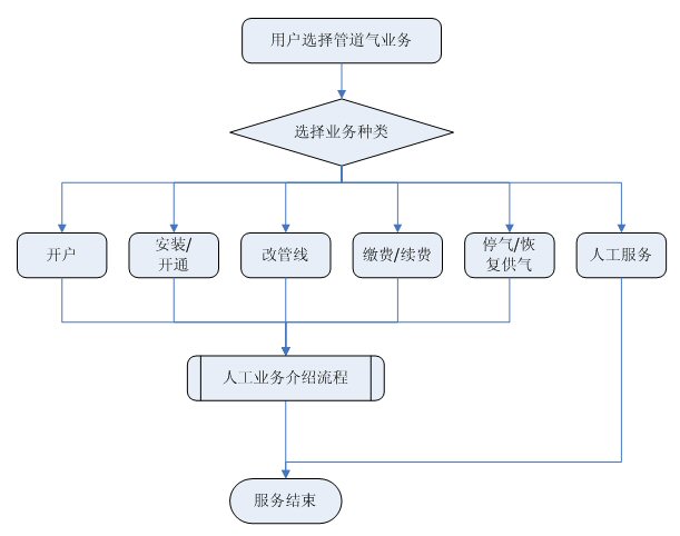 業(yè)務(wù)咨詢:用戶通過(guò)人工、自動(dòng)語(yǔ)音等方式咨詢有關(guān)政策法規(guī)、資費(fèi)標(biāo)準(zhǔn)、用氣常識(shí)、報(bào)裝方法等,系統(tǒng)以語(yǔ)音、傳真、Email、短消息等方式回復(fù)客戶。