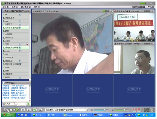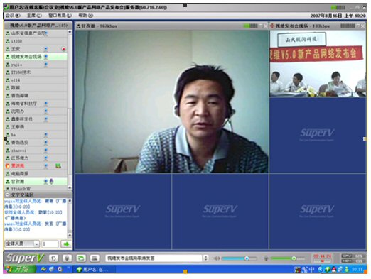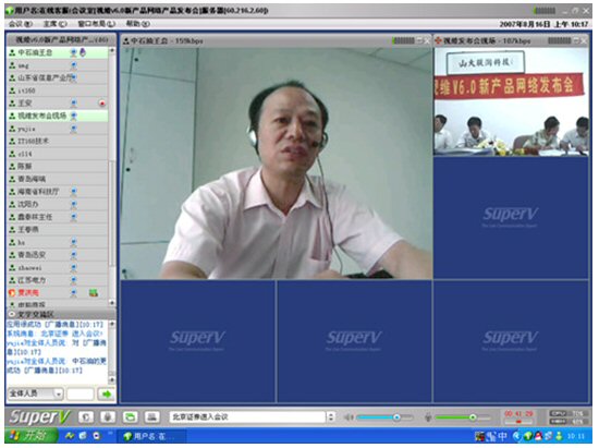 2007年8月16日,視維視頻會議V6.0新產(chǎn)品網(wǎng)絡(luò)發(fā)布會在美麗的泉城濟南舉行,山東省信息產(chǎn)業(yè)廳、濟南市信息產(chǎn)業(yè)局的領(lǐng)導、山東省電信等上級主管部門領(lǐng)導,視維產(chǎn)品新老用戶和有視頻會議需求的潛在客戶,國內(nèi)外合作伙伴,IT168、中國計算機報、電腦商報、C114、支點網(wǎng)、計算機世界、CTI論壇、投影時代等國內(nèi)知名媒體100多人參加了這次網(wǎng)絡(luò)發(fā)布會。在此次會議上,山大聯(lián)潤公司通過視頻會議與各地與會者進行了良好的溝通,同時這次發(fā)布會開創(chuàng)了用視頻會議發(fā)布新產(chǎn)品的先河。