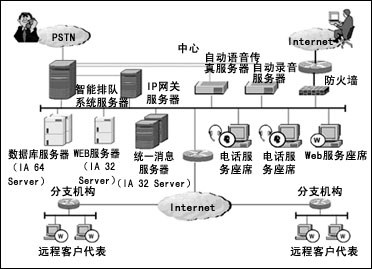 消息處理中心服務(wù)器協(xié)調(diào)客戶服務(wù)中心內(nèi)部各種服務(wù)資源的工作,使客戶來自電話網(wǎng)的訪問和來自互聯(lián)網(wǎng)的訪問能夠按照優(yōu)先級次序處理;