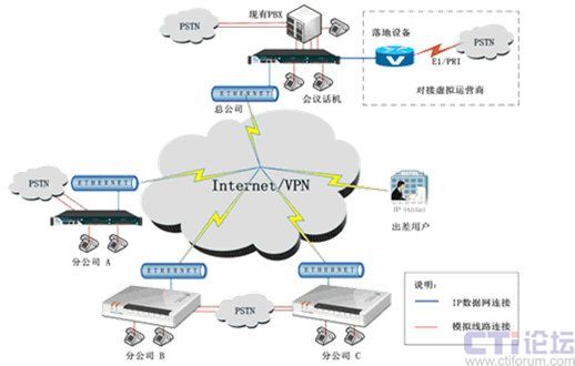 利用公共寬帶網(wǎng)絡(luò),實(shí)現(xiàn)總公司和各個(gè)分公司之間IP電話(huà)互通功能,從而免除總公司和各個(gè)分公司內(nèi)部溝通的通訊市話(huà)和長(zhǎng)話(huà)費(fèi)用。