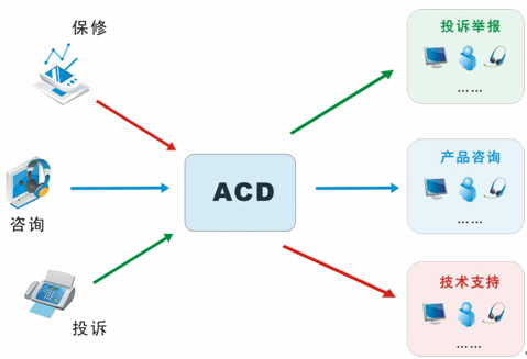 我們目前接入的媒體有很多,不再是傳統(tǒng)的單一電話接入方式,還包括網(wǎng)絡(luò)呼入、E-mail呼入,短信、留言等,所有的媒體接入都通過(guò)統(tǒng)一的排隊(duì)路由,以最優(yōu)化的策略分配給最適合的座席人員;并且,不同的媒體類型具有不同的優(yōu)先級(jí),ACD(自動(dòng)話務(wù)分配)根據(jù)優(yōu)先級(jí)和設(shè)定的排隊(duì)算法,自動(dòng)實(shí)現(xiàn)媒體的統(tǒng)一智能路由。