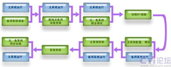 在系統(tǒng)切換前后過(guò)程中,在兩個(gè)地點(diǎn)都要進(jìn)行大量的準(zhǔn)備和備份工作,還有設(shè)備的拆卸和安裝工作,在此過(guò)程中,要保證兩個(gè)工作地點(diǎn)的局域網(wǎng)絡(luò)通暢,確保工作正常進(jìn)行。