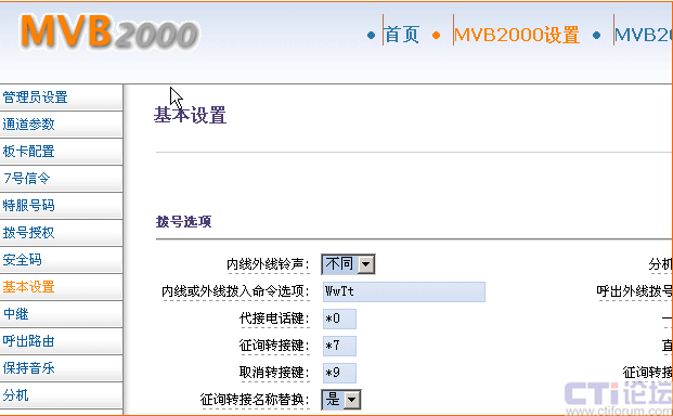 MVB2000采用全WEB界面管理與維護(hù),系統(tǒng)配置、權(quán)限分配、功能分配、座席管理、語音菜單調(diào)整、系統(tǒng)備份與恢復(fù)、系統(tǒng)升級(jí)、報(bào)表查看、客戶資料管理與彈屏等都通過WEB瀏覽器界面實(shí)現(xiàn)。