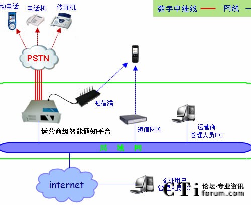 運(yùn)營商管理人員通過局域網(wǎng)或者internet網(wǎng)絡(luò)訪問智能通知平臺,管理和維護(hù)企業(yè)用戶的帳戶信息,并為企業(yè)用戶提供個性化功能配置。