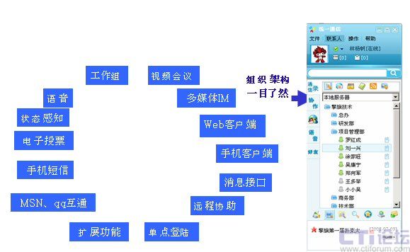 UcSTAR:Unified Communication Star,是擎旗技術(shù)研發(fā)的統(tǒng)一通訊平臺,它為企業(yè)提供多種通訊手段(包括即時通信、視頻、語音、郵件、短信、MSN/QQ互通等);并可融合企業(yè)的各種應用系統(tǒng)(OA、ERP、CRM、網(wǎng)站、電子商務系統(tǒng)等);將企業(yè)對外溝通、銷售和服務、對內(nèi)溝通和協(xié)作無縫整合;輕松實現(xiàn)無地域/時間限制的,可管理、可控制、可擴展的,集團外部溝通、服務和銷售一體化的統(tǒng)一工作平臺。此外,它也可被分離應用為企業(yè)IM及實時協(xié)作系統(tǒng)、多媒體呼叫中心系統(tǒng)、專業(yè)級的IP視頻會議系統(tǒng)等。