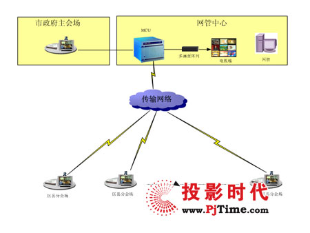 傳輸網(wǎng)絡(luò)采用4M專(zhuān)線,整個(gè)系統(tǒng)由控制中心、市政府主會(huì)場(chǎng)和18個(gè)區(qū)縣分會(huì)場(chǎng)組成,在控制中心配置MCU、網(wǎng)管和電視墻多畫(huà)面顯示單元,通過(guò)網(wǎng)管對(duì)系統(tǒng)實(shí)行設(shè)備的統(tǒng)一管理和會(huì)議資源的統(tǒng)一調(diào)度,控制中心配置18路電視墻集中顯示單元,通過(guò)電視墻,可實(shí)時(shí)監(jiān)看18個(gè)區(qū)縣分會(huì)場(chǎng)情況。在市政府主會(huì)場(chǎng)和18個(gè)區(qū)縣分會(huì)場(chǎng),各會(huì)場(chǎng)配置1套高清晰視頻會(huì)議終端,各會(huì)場(chǎng)終端4M專(zhuān)線接入控制中心,實(shí)現(xiàn)全市電子政府的視頻會(huì)議系統(tǒng)。系統(tǒng)建設(shè)完成后,可實(shí)現(xiàn)導(dǎo)演控制、主席控制、點(diǎn)名發(fā)言、會(huì)場(chǎng)輪巡、攝像機(jī)遠(yuǎn)控、電視墻、多畫(huà)面、多方混音等視頻會(huì)議系統(tǒng)功能。