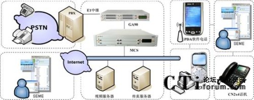 4)該系統(tǒng)支持多類終端,辦公人員不僅可以通過登陸SEME辦公軟件在線辦公,還可以配備臺(tái)式CN2x4VOIP電話、在PC上安裝SP3軟件電話及使用帶有WIFI功能的手機(jī)進(jìn)行VOIP免費(fèi)通話。