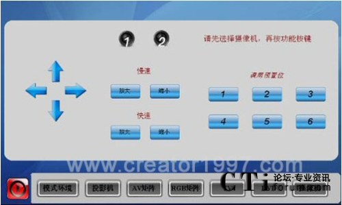 在業(yè)務(wù)不斷攀升的同時(shí),廣東移動(dòng)公司對(duì)培訓(xùn)直播室也進(jìn)行了進(jìn)一步的提升,采用了CREATOR快捷的中控系統(tǒng)和矩陣系列產(chǎn)品,其中,中控設(shè)備是CREATOR快捷PGMII型高端中央控制可編程主機(jī),通過(guò)無(wú)線真彩觸摸屏ST-7600C作為控制媒介,主要控制了矩陣、投影機(jī)、DVD、攝像機(jī)等外圍設(shè)備,對(duì)整個(gè)會(huì)議室實(shí)現(xiàn)有線全智能人性化控制。通過(guò)對(duì)矩陣進(jìn)行控制切換信道,實(shí)現(xiàn)了多個(gè)電腦會(huì)議信號(hào)的快速轉(zhuǎn)換和AV信號(hào)的切換。矩陣采用了8*4的RGB矩陣和8*4的AV矩陣,可以方便的對(duì)電腦信號(hào)和AV信號(hào)進(jìn)行簡(jiǎn)單的切換。通過(guò)紅外發(fā)射棒對(duì)DVD和攝像機(jī)進(jìn)行控制,體現(xiàn)了多媒體控制系統(tǒng)的優(yōu)越性,本系統(tǒng)還通過(guò)攝像跟蹤的原理來(lái)實(shí)現(xiàn)教室直播的錄制。