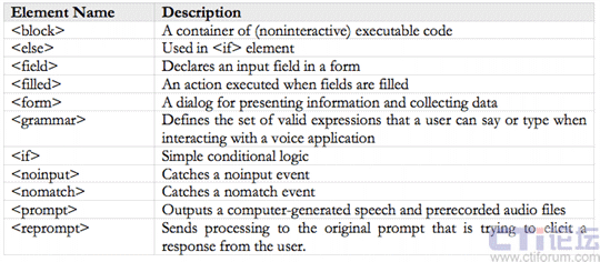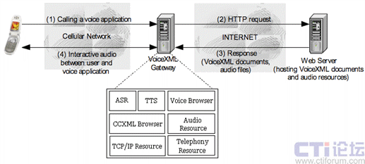 Browser),呼叫控制組件(CCXML Browser),自動(dòng)語(yǔ)音識(shí)別組件(ASR),語(yǔ)音合成組件(TTS)等。這些組件共同組成了VoiceXML的解釋和執(zhí)行平臺(tái)。